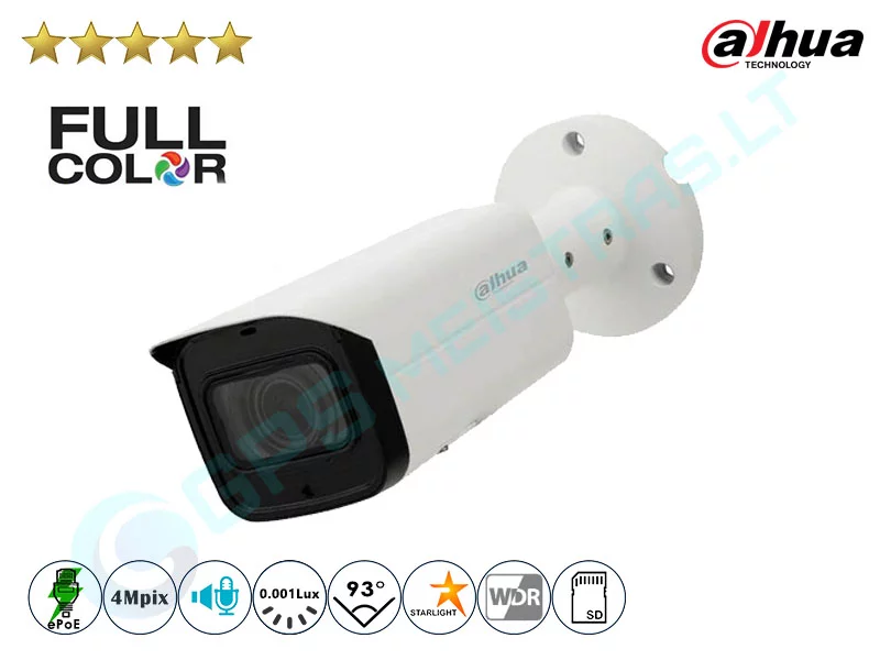 4MP IP cilindrinė vaizdo kamera, fiksuoto židinio nuotolio objektyvu 3,6, Full-color. Kamera su AI (dirbtinio intelekto) funkcijomis: