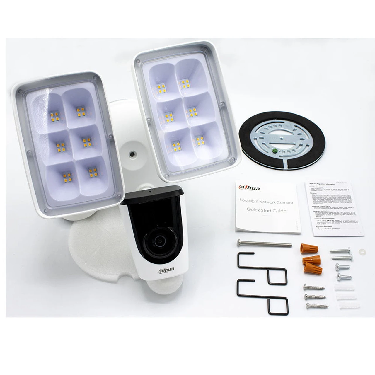 The IPC-L26N Active Alarm Floodlight camera is a component of the Dahua LincX2PRO Series camera series. The camera offers Passive IR motion detection and is capable of sounding a siren and turning on a floodlight when an intruder is detected. The device is compatible with Dahua NVRs; Dahua X5, X7, and X82 Series HDCVI DVRs, and with the DMSS mobile application. The IPC-L26N is certified to the IP65 Ingress Protection standard, making it the ideal camera for indoor and outdoor surveillance at homes and small retail or dining establishments.