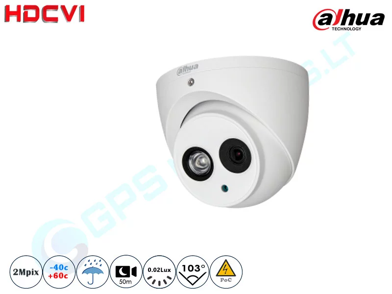2 MP HD-CVI kupolinė vaizdo kamera su integruotu mikrofonu, 2.8 mm fiksuotas objektyvas, objektyvo apžvalgos kampas 103°, IR pašvietimas iki 50 m. HD-CVI kameros pasižymi gera vaizdo kokybe, gera kaina bei lengva instaliacija. Dėl šių priežasčių jos dominuoja CCTV sprendimų pasiūloje kaip idealus kainos ir kokybės santykis, idealiai tinkantis atnaujinti seną analoginę sistemą.