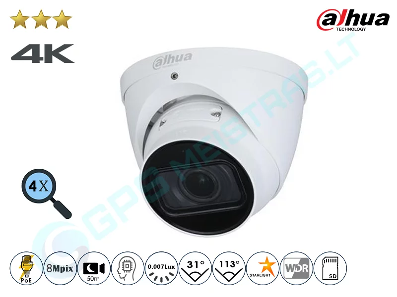 8 MP IP kupolinė vaizdo kamera, 2,7 -12 mm keičiamo židinio nuotolio objektyvas, IR pašvietimas iki 40m.